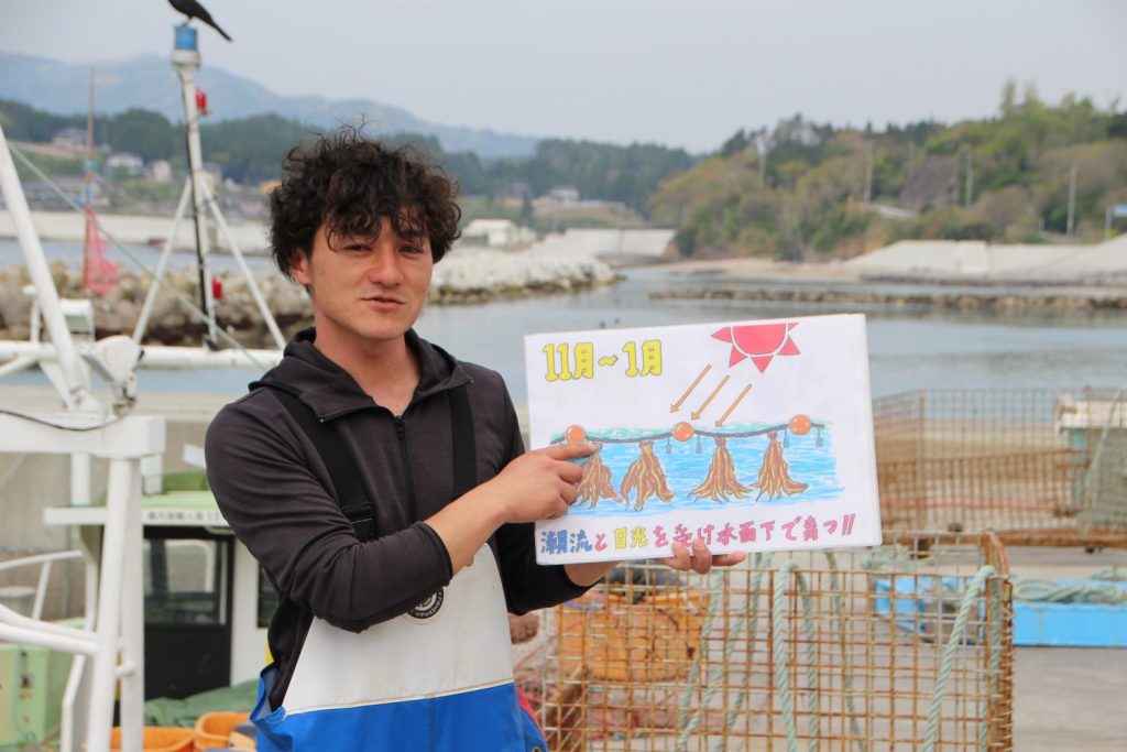 漁師お手製のフリップを使い、お子さんにもわかりやすい説明です。