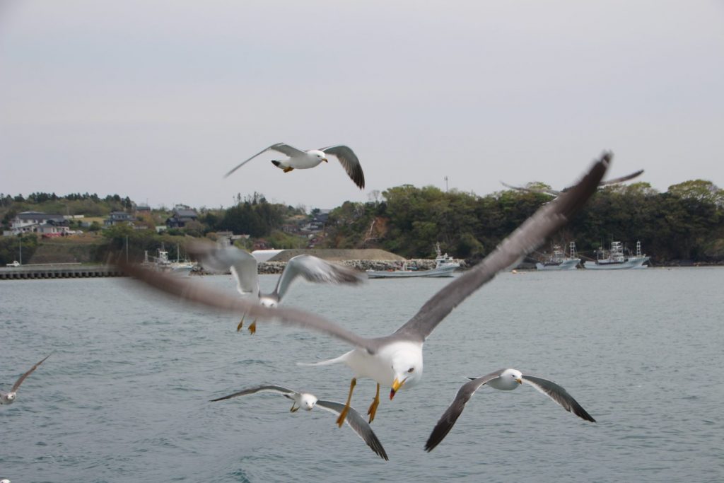 そう、クルージングのお楽しみ・ウミネコの餌付けです♪
