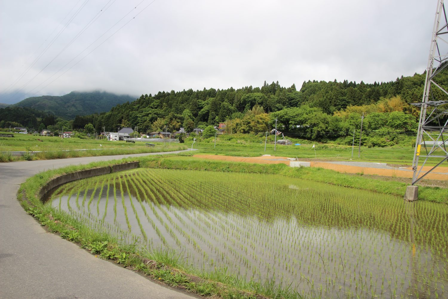 つい先日植えられたばかりのかわいらしい苗を見ながら里山を走ります。