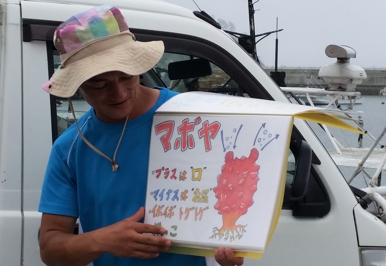じつはこの紙芝居も地元の漁師さん手作りなんです。可愛いイラストですよね~(*^^*) ※写真の漁師さん作ではありません