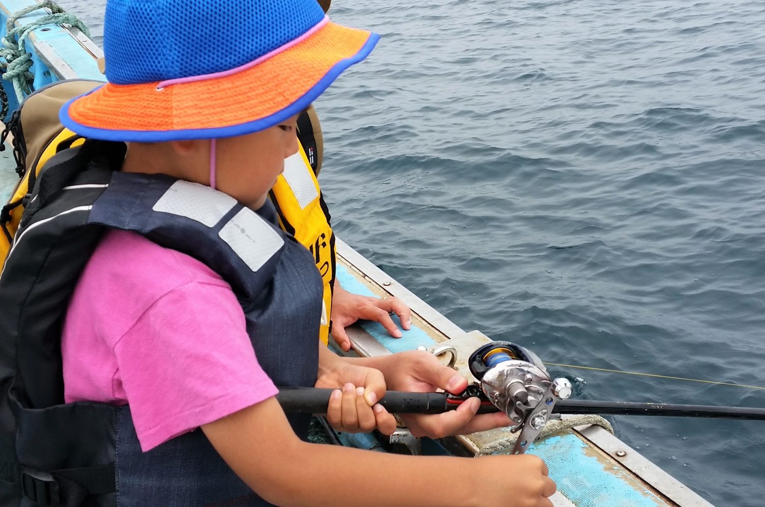 大人の皆さまがホヤ収穫体験をしているあいだ、お子様は漁師さんのご厚意で釣り体験。釣れるかな…?
