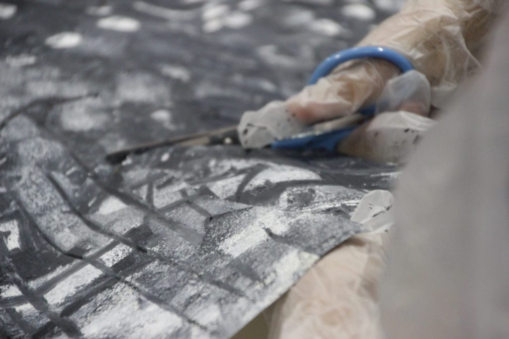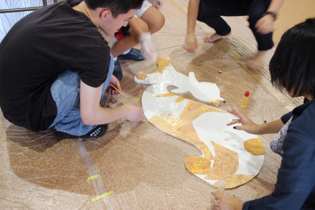 そして、今度はその大きな紙を、自由に破いて、切って、貼って。