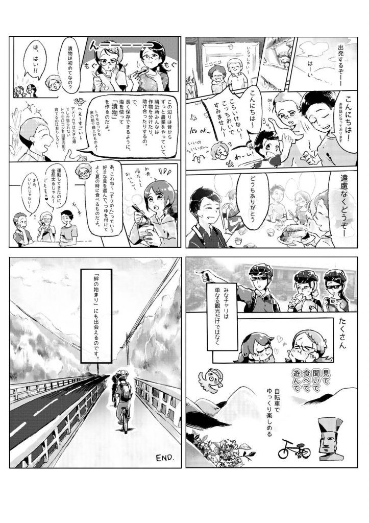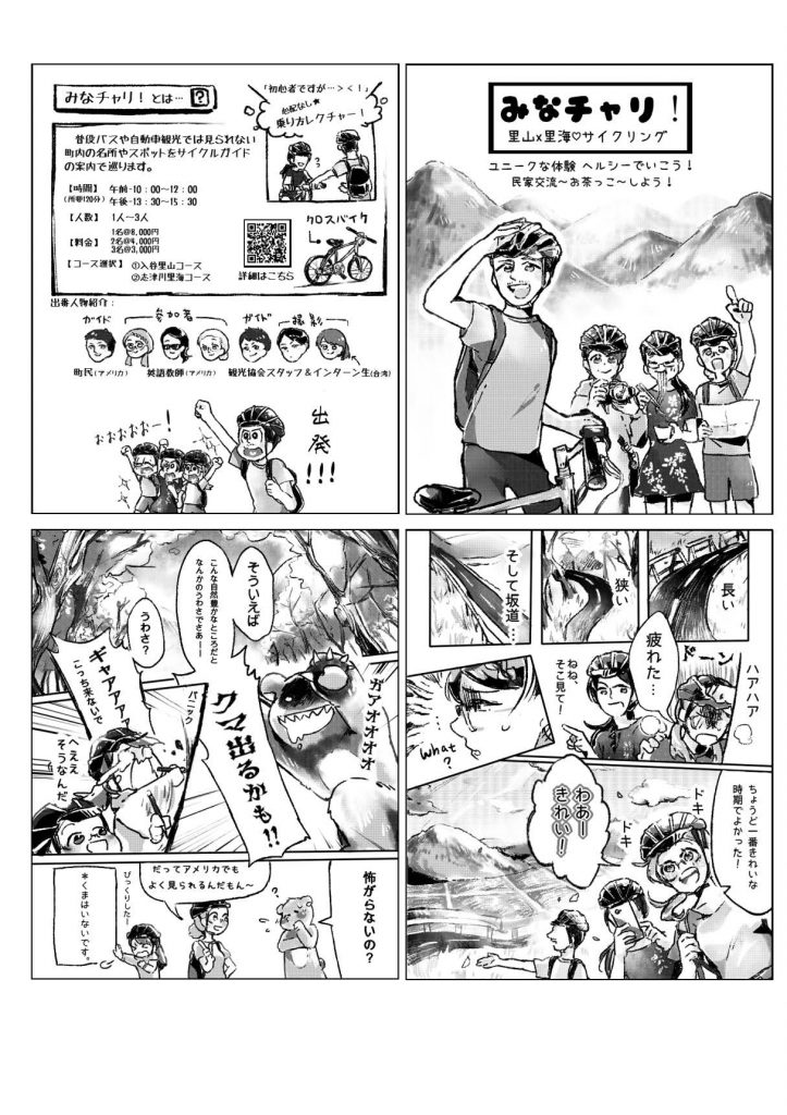 参加するなかで彼女自身が趣味で得意とする”漫画”で描き表して紹介したい!という強い想いから、「漁業体験」と「みなチャリ」の漫画を描いてもらいました。