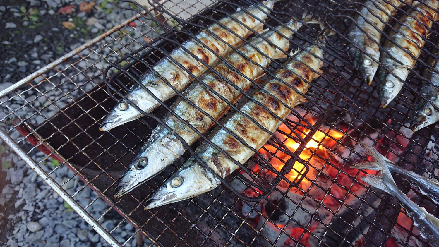 直売所はたくさんのお客様で賑わいを見せておりましたが外ではなんと今が旬のサンマが炭火で焼かれていたり・・・