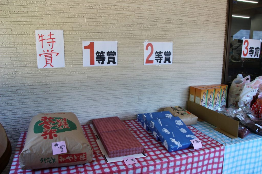 食べ物以外にも感謝祭では新鮮な野菜や新米が当る抽選会も実施。