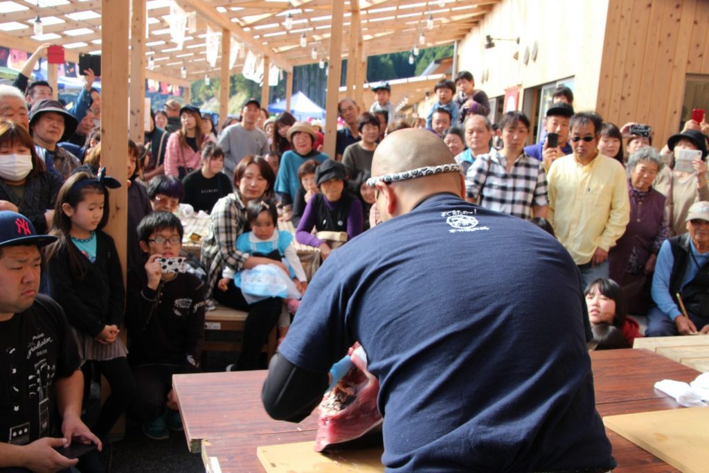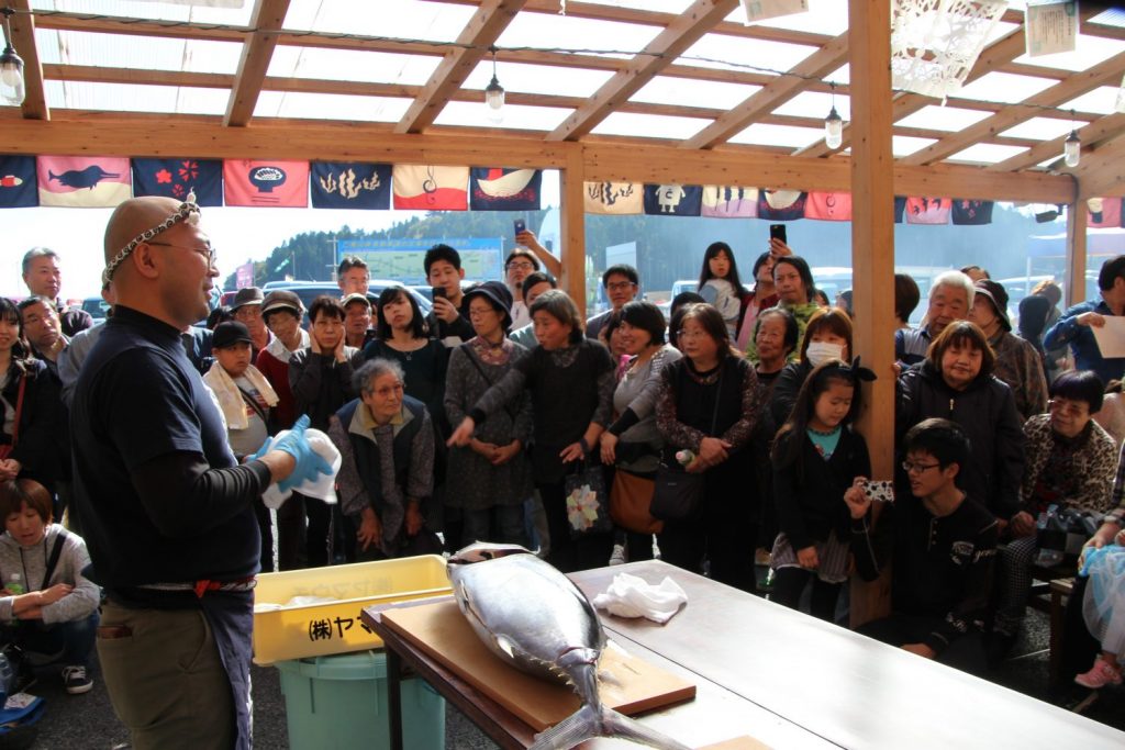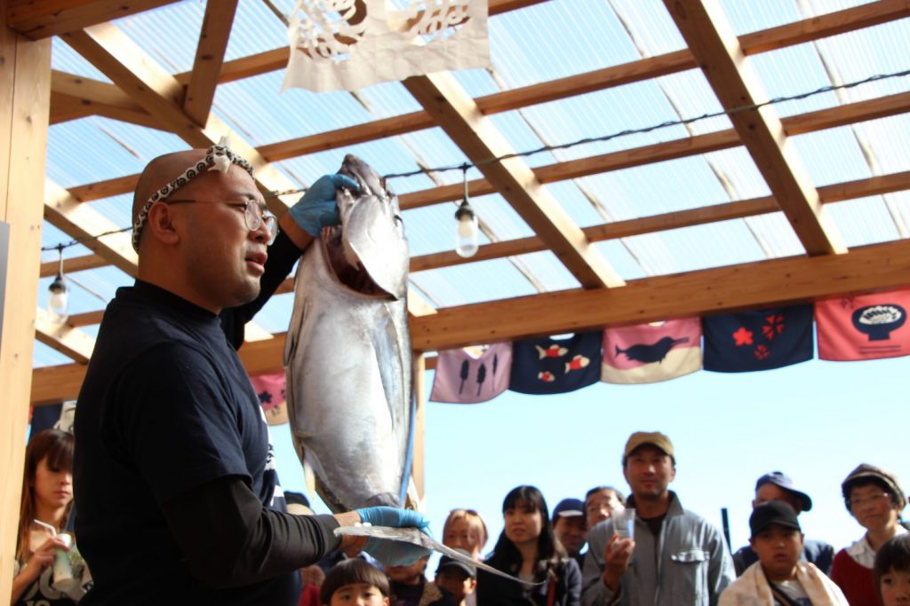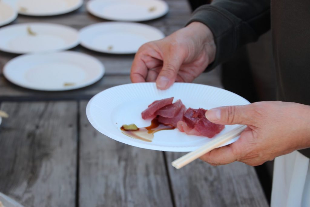 その場で捌かれて、頂くマグロはうまい!!解体ショーも迫力があってとても凄かったと町内に住むお母さんは笑顔でお話をしてくれました。