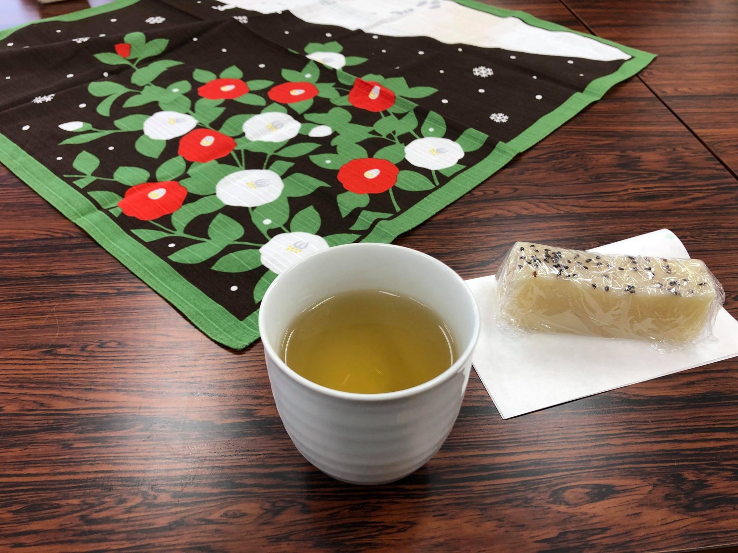 この日のたばご(おやつ)は椿茶とがんづぎ♪♪♪