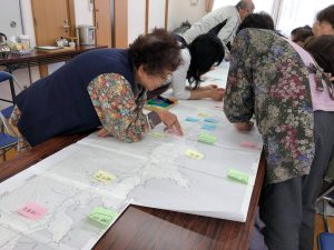 これまで様々な活動をされておりますが、この地域MAPはすでに2地区(全4地区=志津川、歌津、戸倉、入谷)が完成しており、今回は新たに『戸倉』地区の制作に取り掛かったとのことで、地域住民の皆さんとの話し合いの場にお邪魔してきました。