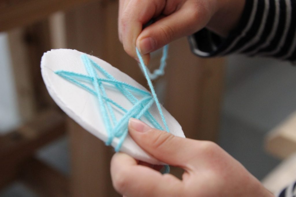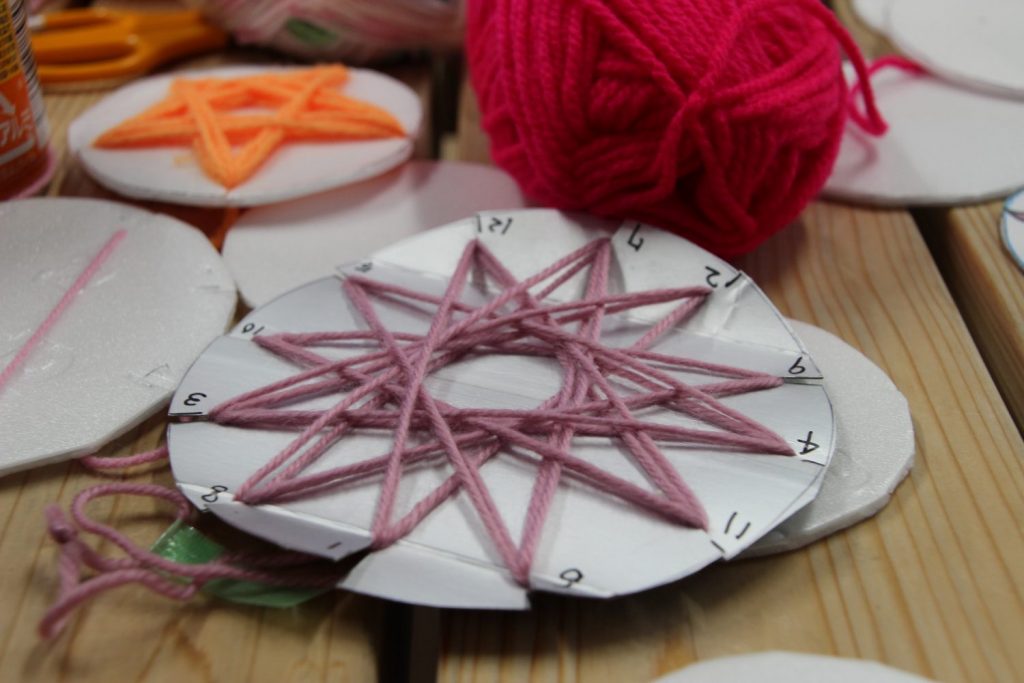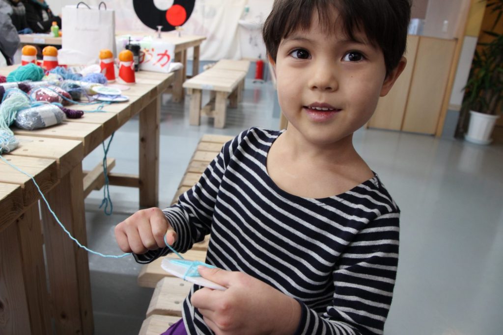 かもめ館にお邪魔してみると、子どもたちが真剣に毛糸をぐるぐるぐるぐる…。