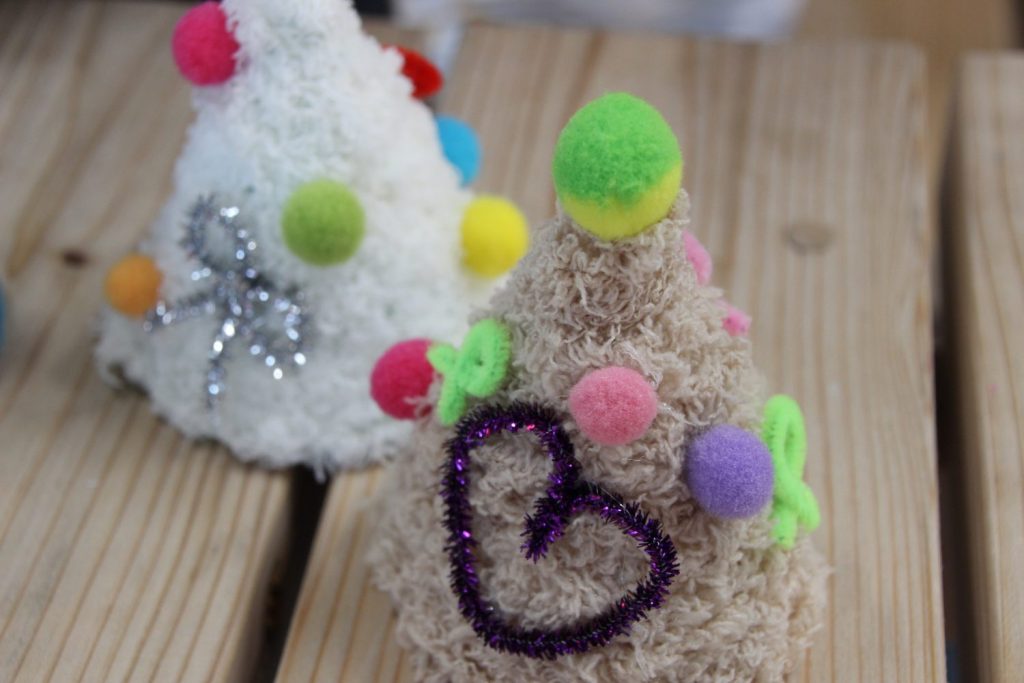 小さな、もこもこツリーも手作り!