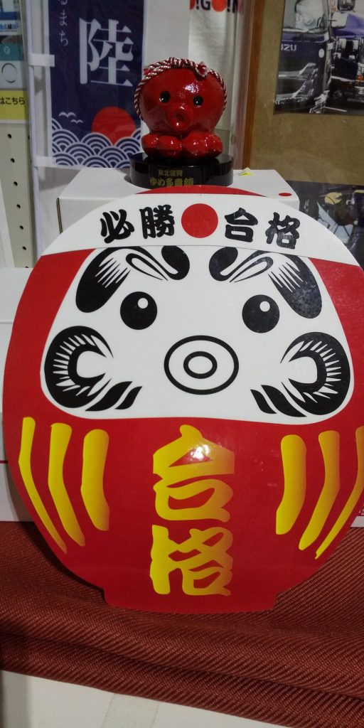 (南三陸町はタコの名産地でもあり、「オクトパス君」はそのタコをモチーフにした町の人気キャラクターです。タコは古来より縁起がよい生き物とされており、受験生及び地域に多くの幸が吸いつくよう願いが込められています。)