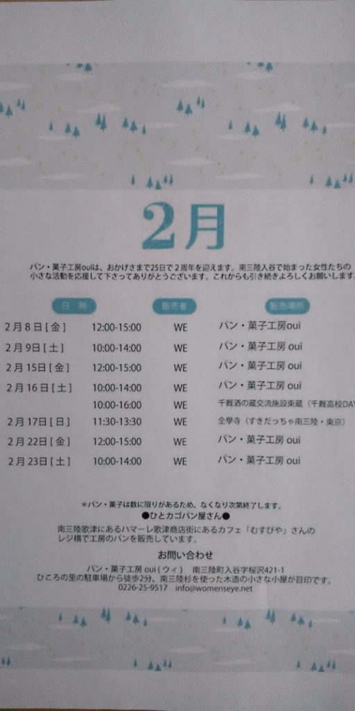 南三陸町入谷桜沢地区にあるパン・菓子工房oui(ウィ)さんです。