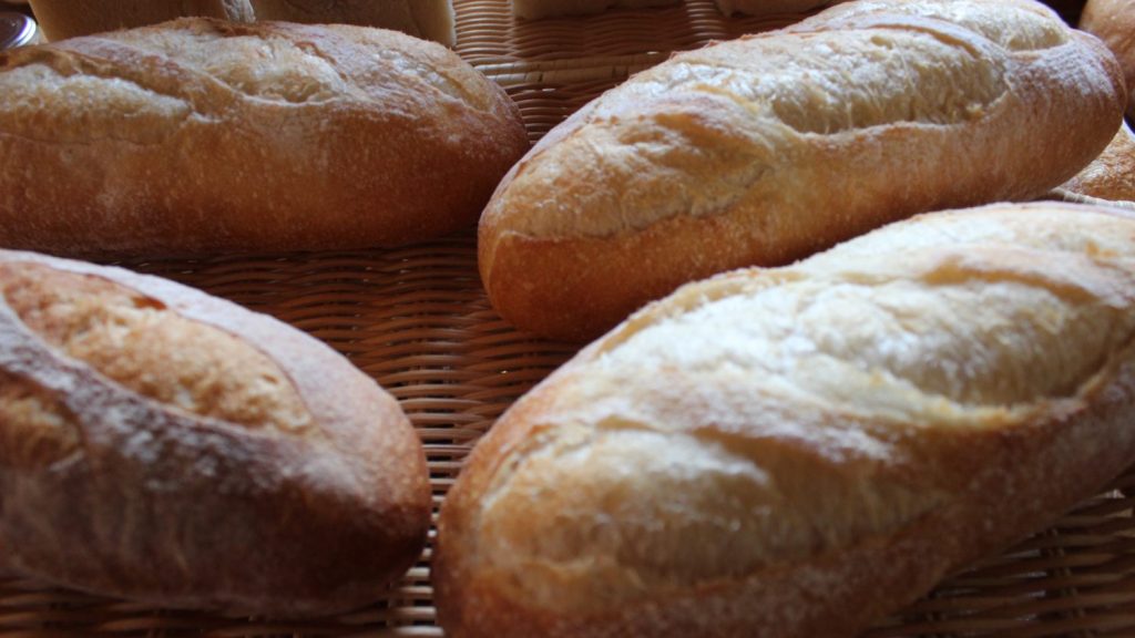 奥の厨房からは焼きたてパンの香ばしい香りが漂ってきます。