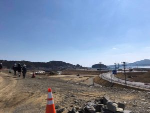 現在、急ピッチで工事が進められている中、今回は特別に視察にお邪魔してきました。(志津川地区まちづくり協議会の役員の皆さんによる視察で、普段は関係者以外の立入はできません。)