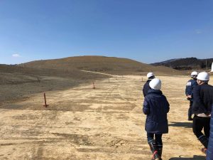 現在、急ピッチで工事が進められている中、今回は特別に視察にお邪魔してきました。(志津川地区まちづくり協議会の役員の皆さんによる視察で、普段は関係者以外の立入はできません。)