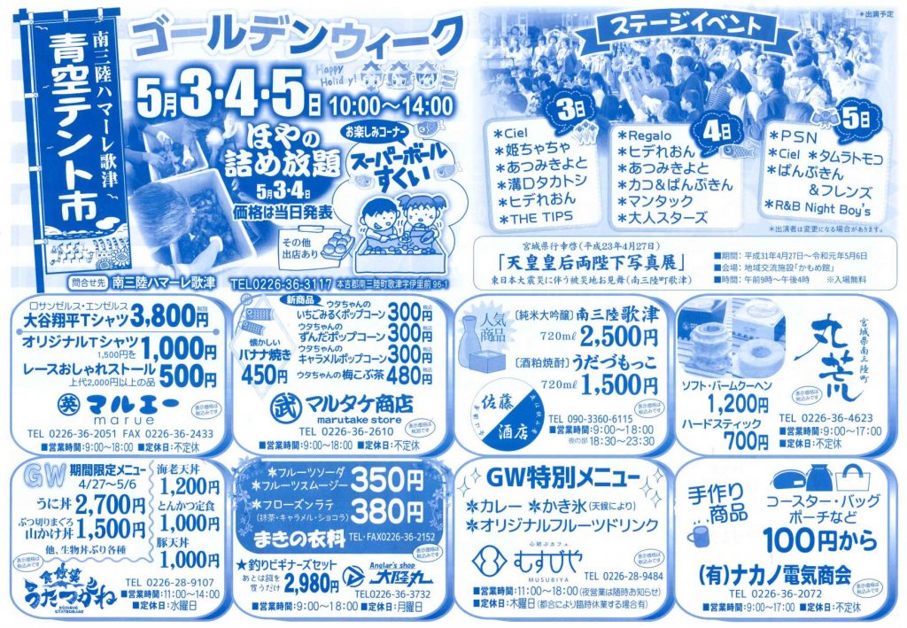 ゴールデンウィーク青空テント市(予告) | 南三陸ハマーレ歌津