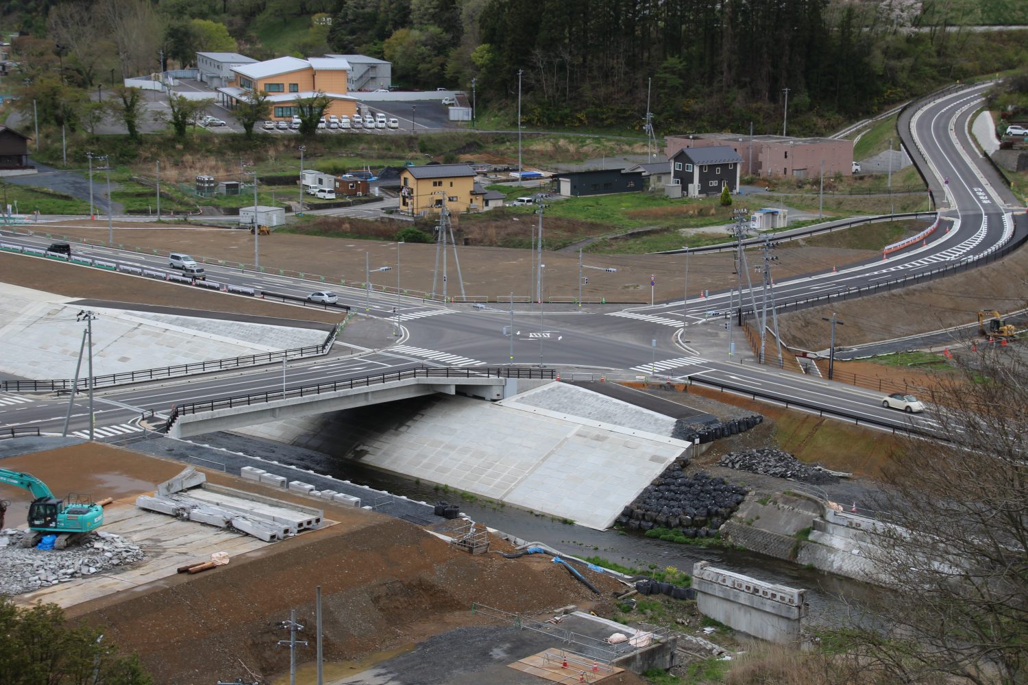 ⑥国道398号・復興拠点連絡道路(志中大橋交差点付近・完成)