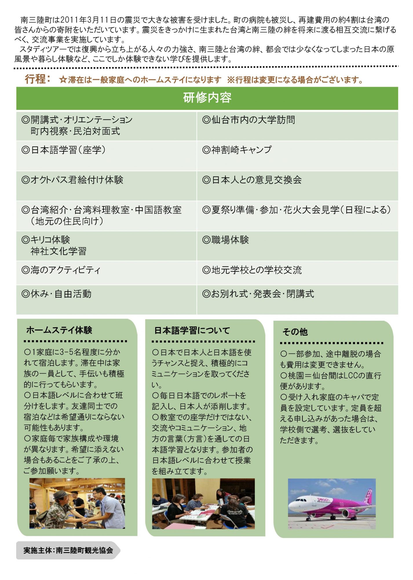 チラシのように、今年の夏は研修団が三つ来町する予定です。
