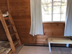 2段ベッドの形で各2組づつ、またテーブルの置いてある床に1組、計5組のお布団があります。