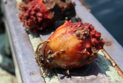ホヤは、季節によって水深を変えたり、間引きをしたりするなどの手間をかけて、2〜4年くらいで出荷するそうです。