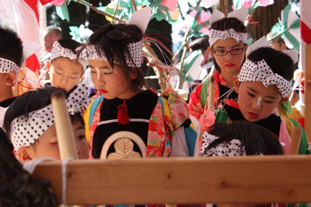 「打囃子」は入谷地区の4つの契約講が持ち回りで奉納します。