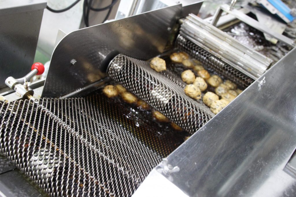 ひじき揚げ団子が出来上がったら、真空加工の作業。
