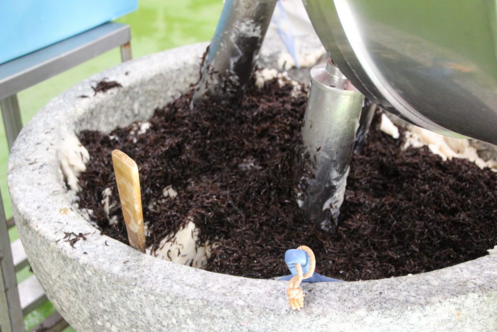 まずは蒲鉾の素となる原料を細かくたたいて行くそうです。