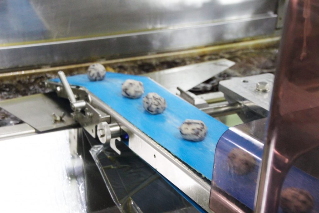 ひじき揚げ団子が出来上がったら、真空加工の作業。