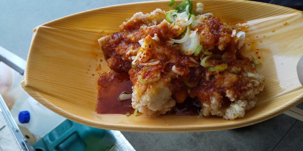 ジューシーな鶏の唐揚げと辛味だれが癖になる美味しさ♪