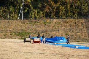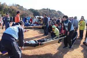 消防の方々の指導を受けながら、防災グッズを拾ったり、消火器を使ったり、応急処置をしたり、担架を作って運んだりと、災害時に必要な要素が盛りだくさん+みんなで楽しめる素晴らしい競技でした。