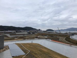 2019年12月17日、雨模様の寒空の下、南三陸町志津川地区の中心部に整備中の