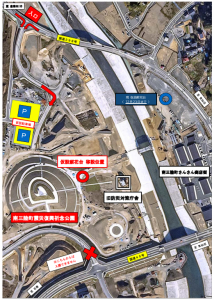 案内板などに従って臨時駐車場やトイレをご利用ください。