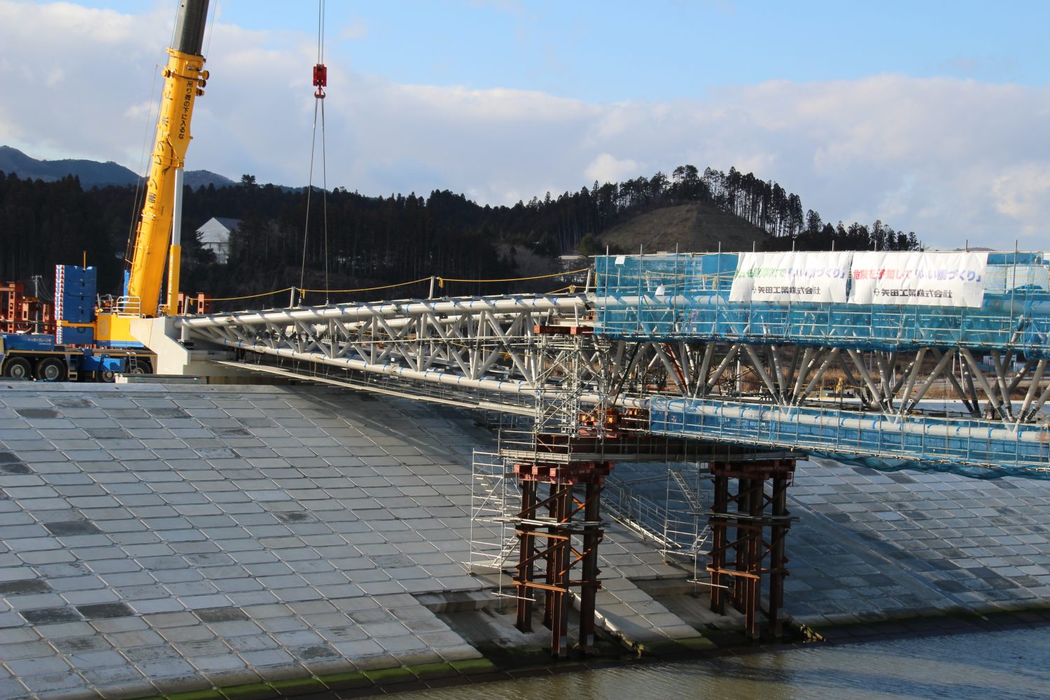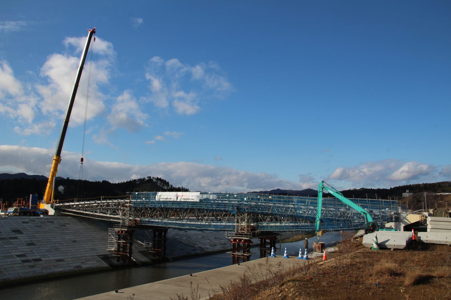 見た目こそ“橋らしく”なりましたが、まだ渡ることは出来ません。