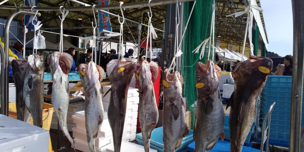 南三陸魚市場では朝と昼の2回「セリ」が行われることにより活きの良い鱈が手に入ります。