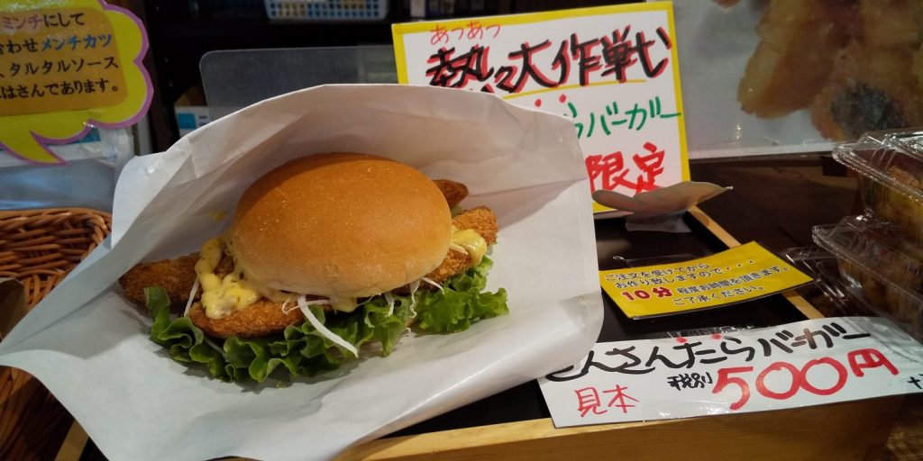 マルセンでは鱈フライバーガーを販売(日曜日限定)