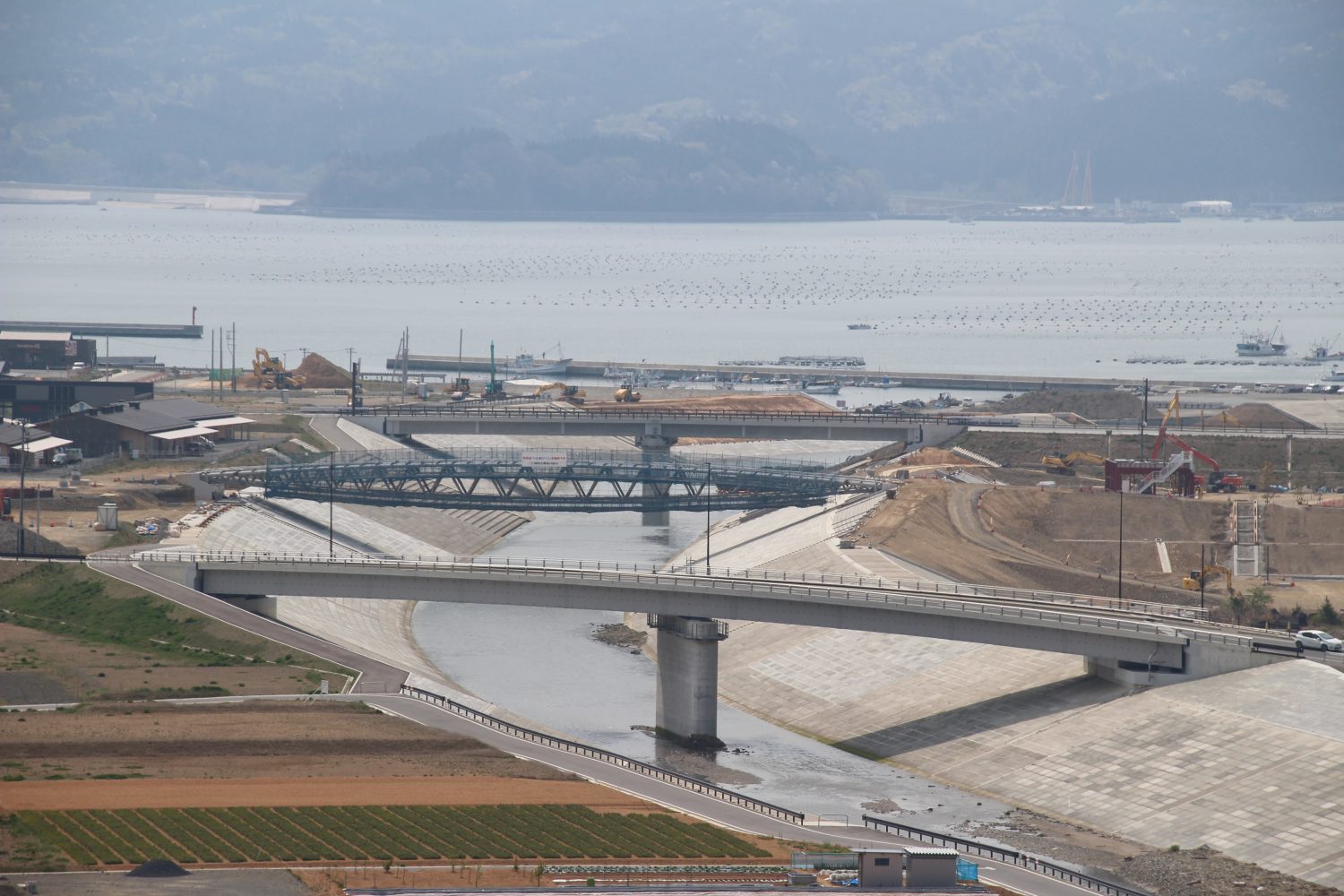 ③奥より汐見橋(完成)~中橋(上部工工事中)~八幡橋(完成)