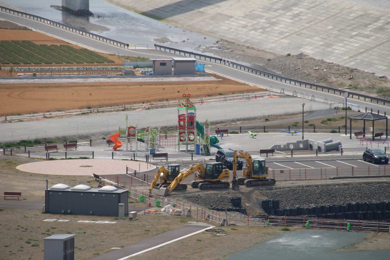 ※2枚目:みらいの森・八幡川岸壁は現在も工事中です
