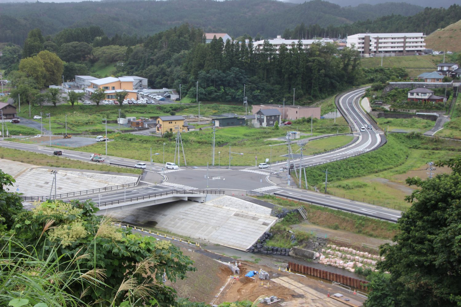 ⑥国道398号・復興拠点連絡道路(志中大橋交差点付近・完成)