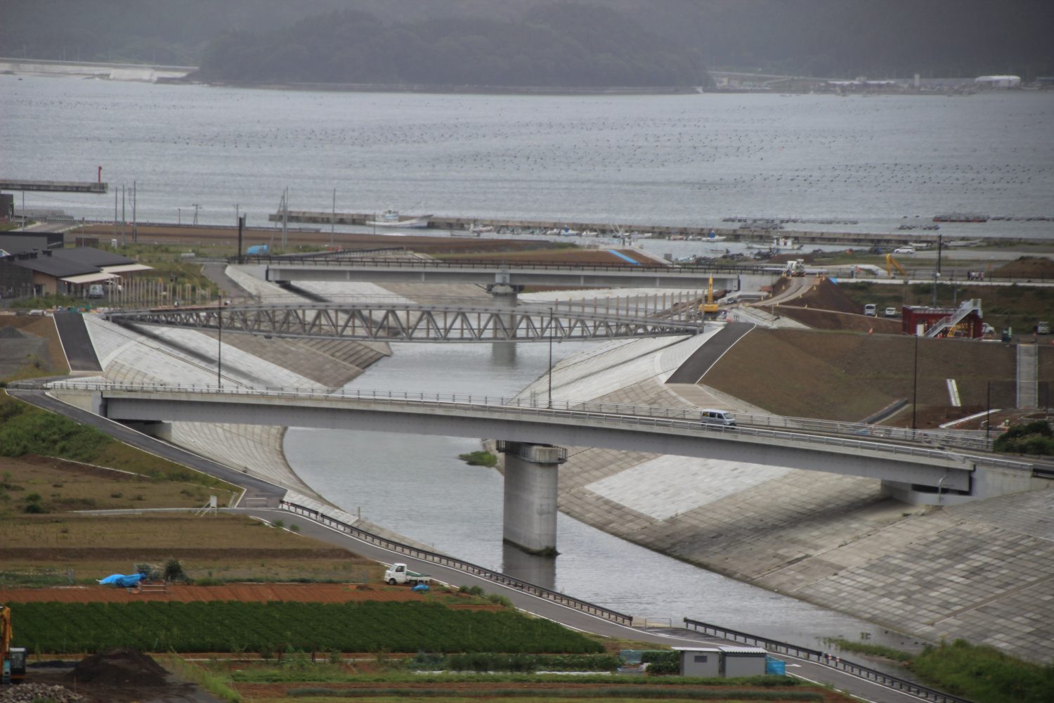 ③奥より汐見橋(完成)~中橋(上部工工事中)~八幡橋(完成)