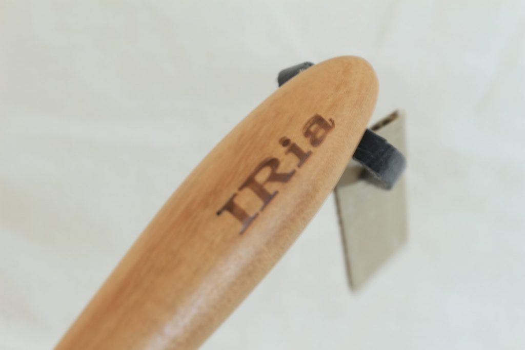その入谷の木材を使用して木製のターナーやスプーン、プレートなどの日用雑貨、「IRia」シリーズを作成している阿部伸さん。