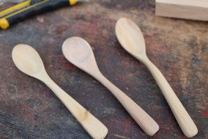 木の温もりを直に感じてほしいため、スプーンや木べらはほとんど無塗装。