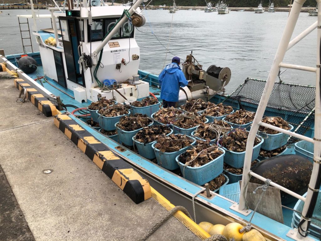 (カキの出荷解禁でお忙しい中ご協力頂きましたカキ養殖漁師さんありがとうございました。)