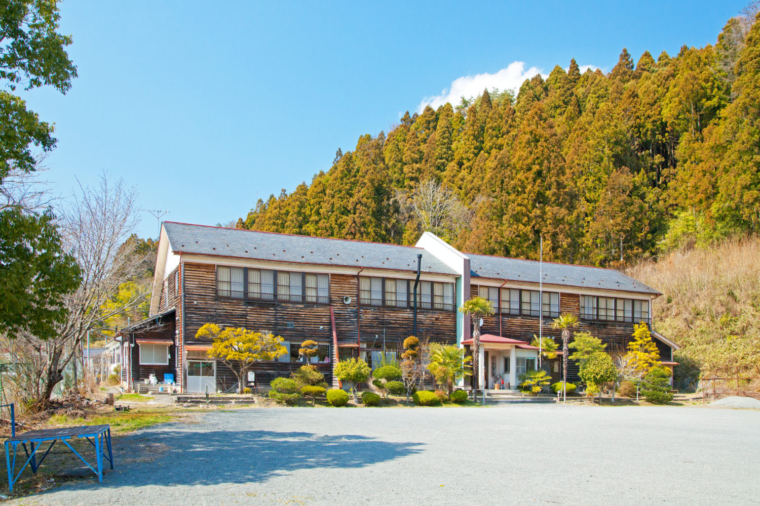 「校舎の宿 さんさん館」は、唯一海に面していない山間の入谷地区にあるお宿。昭和初期の小学校(旧林際小学校)をリノベーションし、現在は宿泊施設として利活用されています。