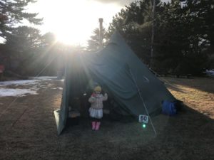 こちらの親子はテント内の石油ストーブで暖を取りながら楽しんでいました。