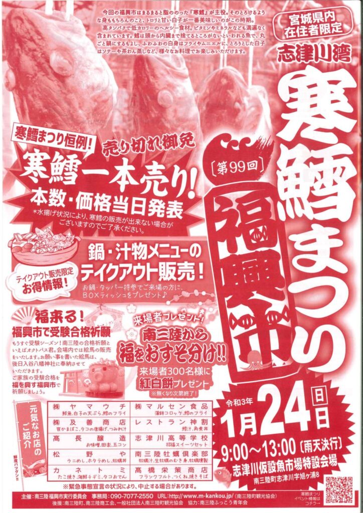 この時期旬を迎える寒鱈の一本売りや温かいお鍋・汁物メニューのテイクアウト企画を実施。その他にも来場者プレゼント等企画盛りだくさんの一日となっておりますので皆様のご来場をお待ちしております!