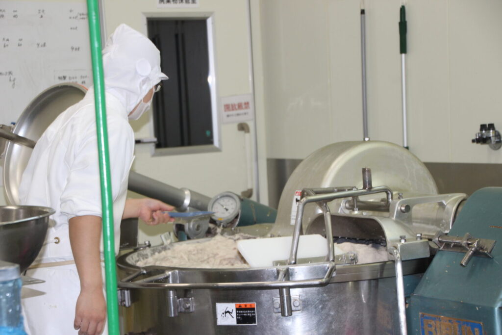 こちらが及善蒲鉾店の工場。東日本大震災で被害を受け、2017年に南三陸町入谷地区に再建されました。ここで美味しいかまぼこが毎日作られています。
