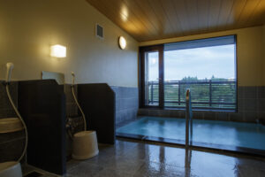 お風呂はなんと24時間入浴可能。時間を気にせず気兼ねなく入れるのはとても嬉しいですね。そしてお風呂からも海が眺められる最高のロケーション。部屋に戻ってからものんびりと過ごし、1日の疲れも取れたところで眠りにつきました。