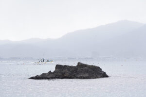そしてサンオーレ袖浜を歩いて民宿へ戻る途中、岩があるのですが、これもよくよく見ると横に寝ているモアイの顔!岩の名前も「モアイ岩」なんです。どの角度が一番モアイに見えるか!歩きながら何枚も写真を撮りました。