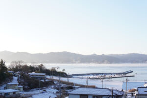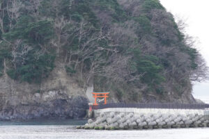 荒沢神社から約10分ほど歩くと見えてくる「荒島」。桟橋を歩いて渡れて、弁才天の島として漁業者から信仰されてきた島。鳥居は震災後に再建され、階段を上がっていくと神秘的な森になっていて、小さな島でありながら、3つの植生の森が共存しているんです。島の頂には荒嶋神社があり、そこでお参り。降りる際の、海と町を見渡す景色もとても綺麗でした。