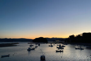せっかくなので日が暮れる前にサンセット散策へ行くことに。カメラを持って、宿からすぐ近くの防波堤を歩いていると、ちょうど日が落ちていき、志津川湾と漁船が夕陽に包まれとても癒される美しい光景が見れました。